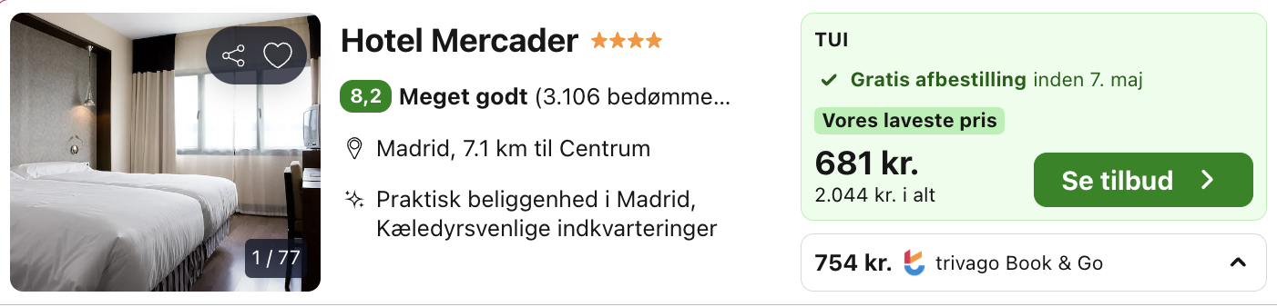 Hvis rejsen er med “Vis rejse” link, så er der tale om en pakkerejse, hvor fly og hotel bestilles på en gang.