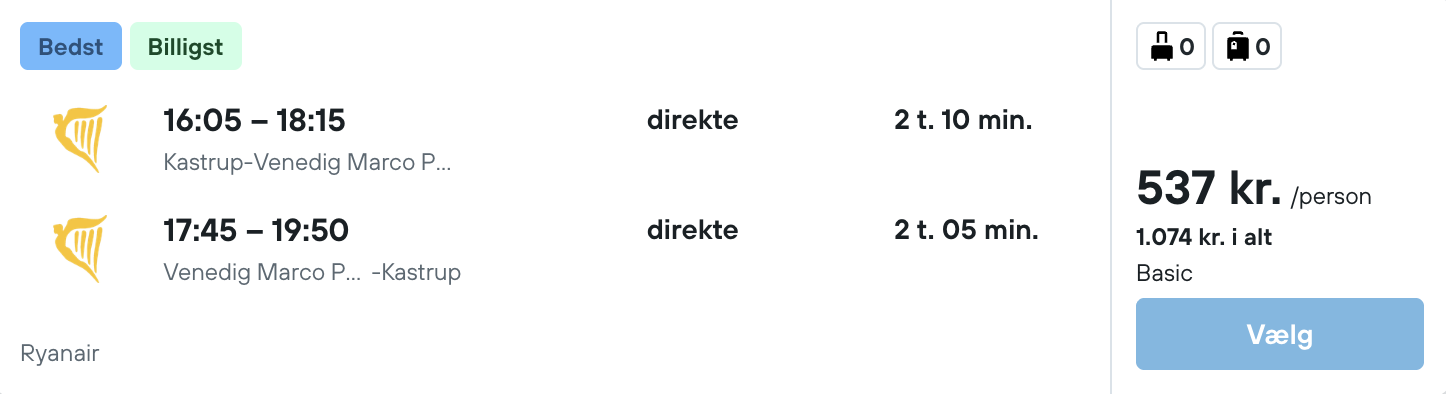 Flyprisen inkluderer kun en lille taske, men bagage kan tilkøbes.