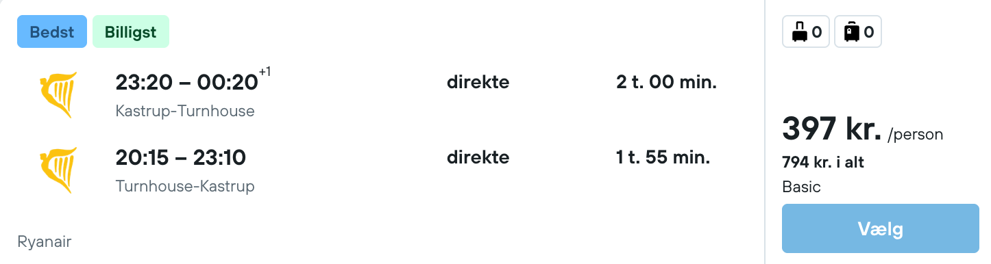 Flyprisen inkluderer kun en lille taske, men bagage kan tilkøbes.
