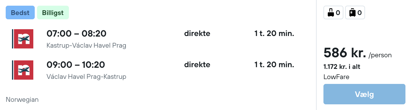 Flyprisen inkluderer kun en lille taske, men bagage kan tilkøbes.