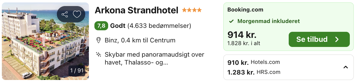 3 dages forlænget weekend på 4-stjernede Arkona Strandhotel for kun 910,- per person inkl. morgenmad!