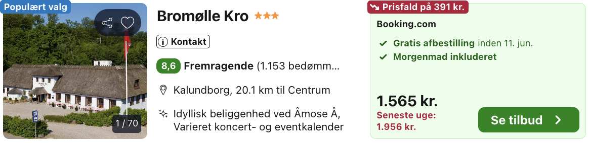 Weekendophold på Bromølle Kro for kun 783,- per person inkl. morgenmad!
