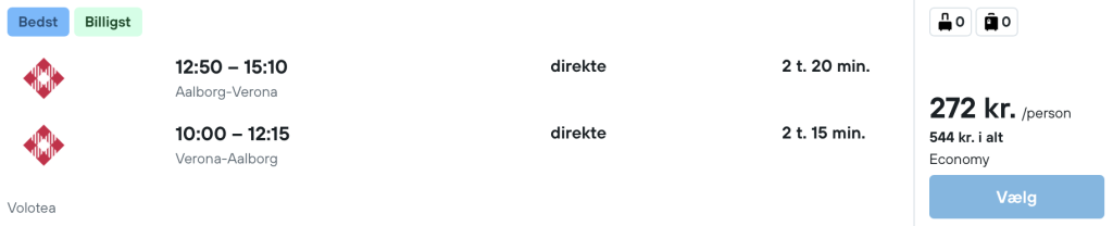 På vores flysøgningsmaskine har vi fundet billige flybilletter fra Aalborg til Verona: