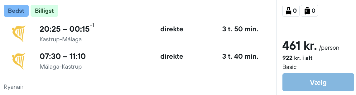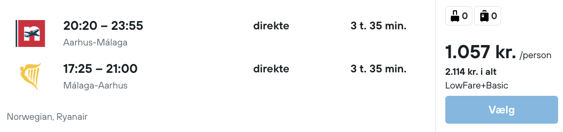 Flyprisen inkluderer kun en lille taske, men bagage kan tilkøbes.