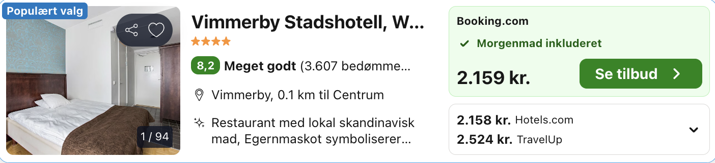 | Bemærk: Den samlede pris for hotellet er 2.158,- for 4 personer, hvilket svarer til 540,- per person.
