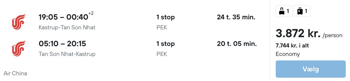 På vores flysøgemaskine har vi fundet billige flybilletter fra København til Saigon/Ho Chi Minh by.