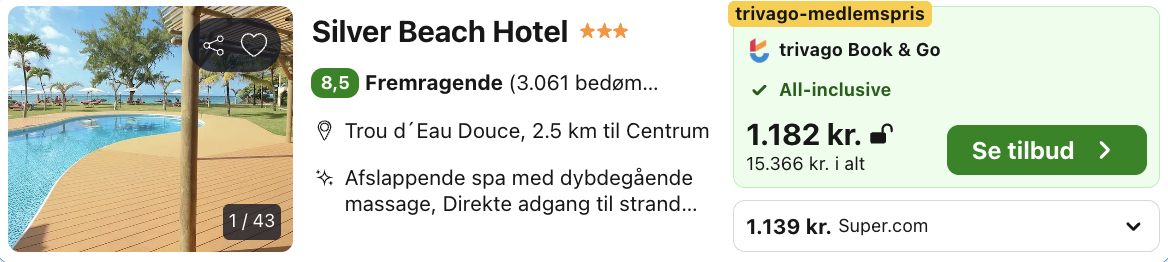 14 dage på Mauritius med all inclusive for kun 14.202,- per person inkl. fly, bagage og godt hotel med pool og god beliggenhed ved stranden!