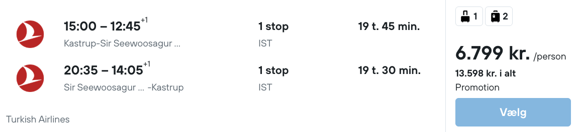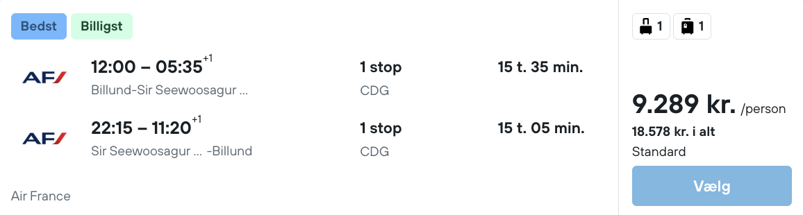 Vi har fundet billige fly fra København og Billund til Mauritius: