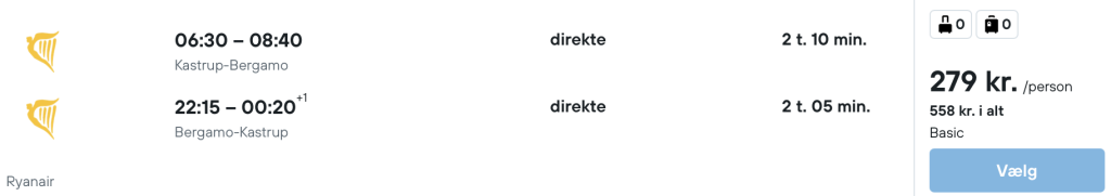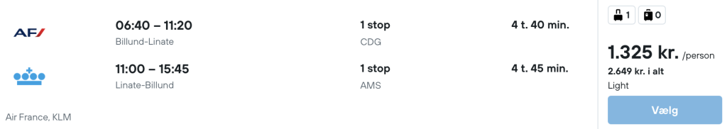 Flyprisen inkluderer kun en lille taske, men bagage kan tilkøbes.