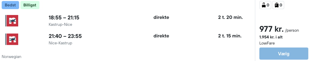 Flyprisen inkluderer kun en lille taske, men bagage kan tilkøbes.