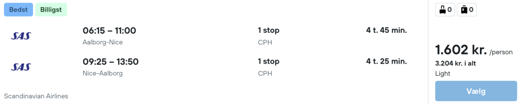 På vores flysøgemaskine har vi fundet billige flybilletter fra København og Aalborg til Nice.