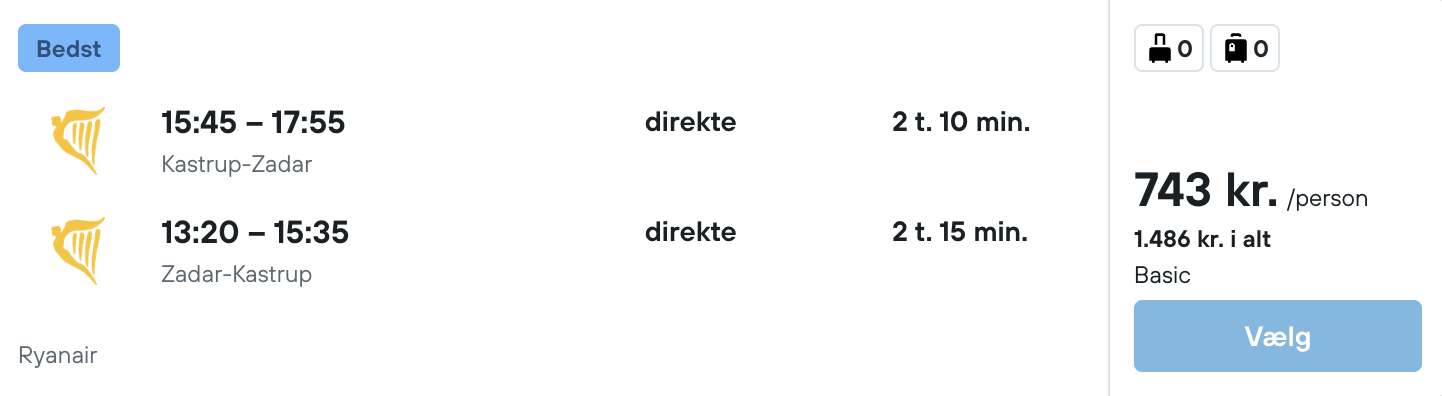 Flyprisen inkluderer kun en lille taske, men bagage kan tilkøbes.