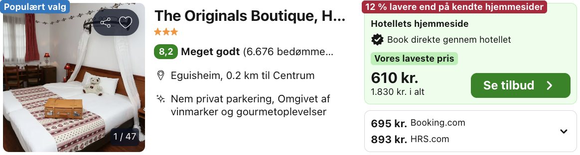 Bemærk: Husk at lade søgningen blive helt færdig. Der kan være mindre prisforskelle på mobil og pc. Undersøg med fordel, hvor det er billigst inden bestilling. Vælg Laveste Pris på Trivago.