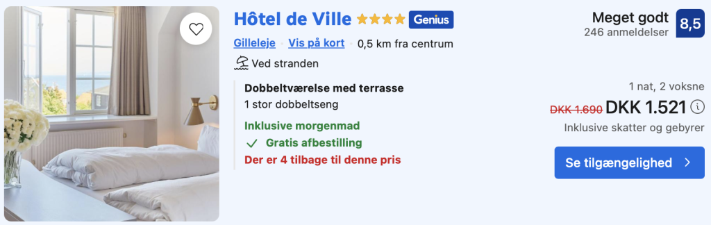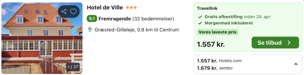 Husk at logge ind / oprette en gratis bruger på trivago samt hos Booking.com. Derved opnås den bedste pris!