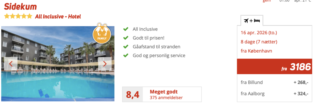 Hvis rejsen er med “Vis rejse” link, så er der tale om en pakkerejse, hvor fly og hotel bestilles på en gang.