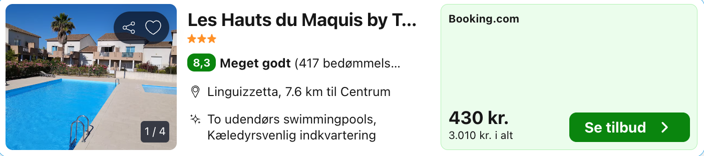 1 uge på Korsika for kun 2.653,- per person inkl. direkte fly og 3-stjernet lejlighedshotel med pool!