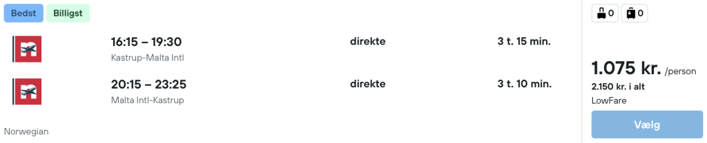 På vores flysøgningsmaskine har vi fundet billige flybilletter fra København til Malta: