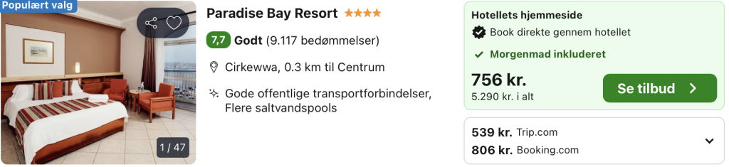 | Husk at lade søgningen blive helt færdig. Vælg “Vores laveste pris” på trivago, for at opnå den bedste pris på hotellet. Der kan være mindre prisforskelle på mobil og pc.