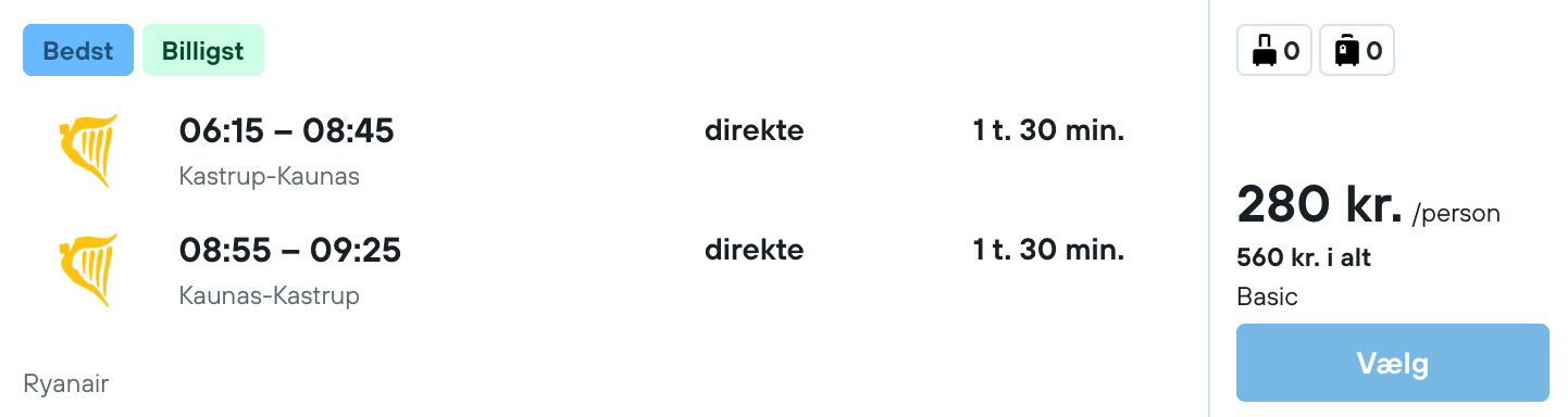 Vi har fundet billige flybilletter fra København til Kaunas: