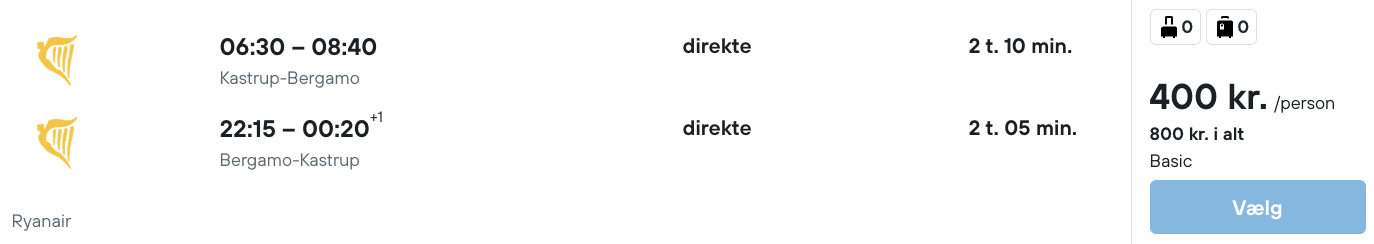 Flyprisen inkluderer kun en lille taske, men bagage kan tilkøbes.