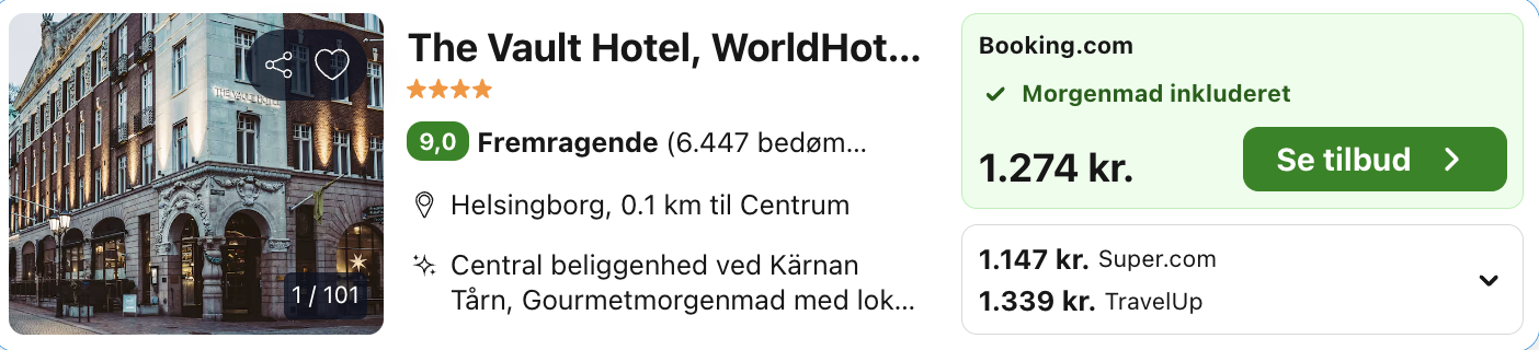 Ophold på det 4-stjernede The Vault Hotel for kun 574,- per person inkl. morgenmad og beliggenhed i centrum af smukke Helsingborg!