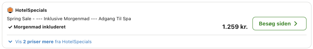 Bemærk: Den samlede pris for opholdet er 1.259,- for 2 personer i et dobbeltværelse, hvilket svarer til 630,- per person. Vælg Hotelspecials på trivago. Derved indgår adgang til spa i prisen! Rejs365 er ikke et rejsebureau, men en rejseside der finder gode tilbud! – Vi modtager kommission, men det påvirker ikke din pris! Læs mere her |