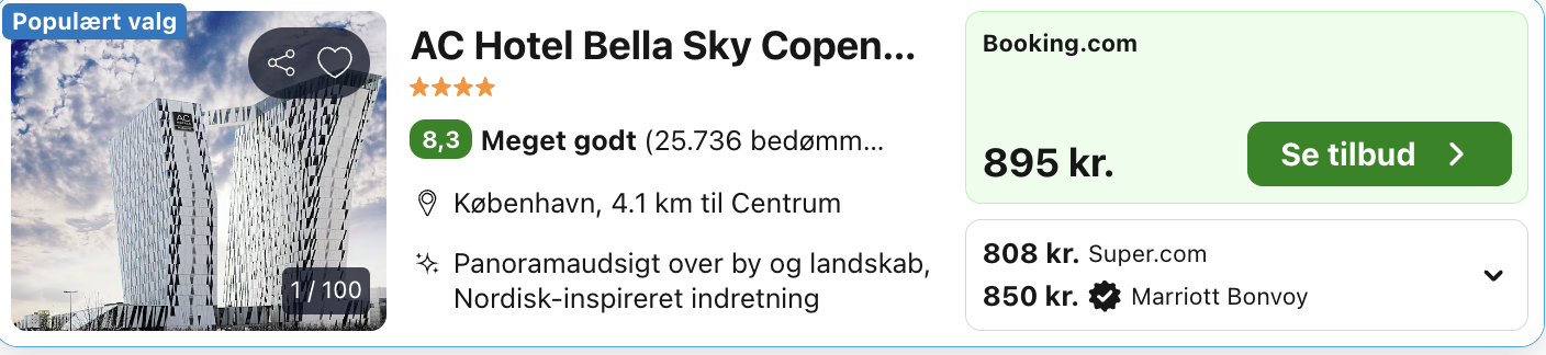 Weekendophold på Bella Sky Hotel for kun 404,-