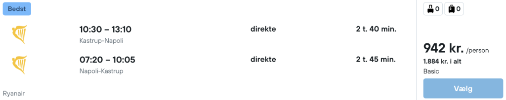 Vi har fundet billige flybilletter fra Aalborg og København til Napoli.