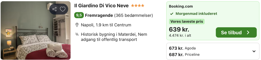 | Bemærk: Husk at lade søgningen blive helt færdig samt at vælge laveste Pris på Trivago.