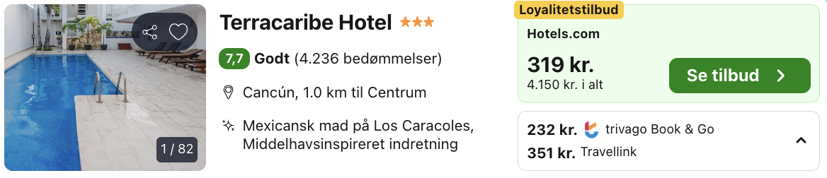 | Bemærk: Husk at lade søgningen blive helt færdig. Vælg “Pris fra lavest til højest” på trivago, for at opnå den bedste pris på hotellet.