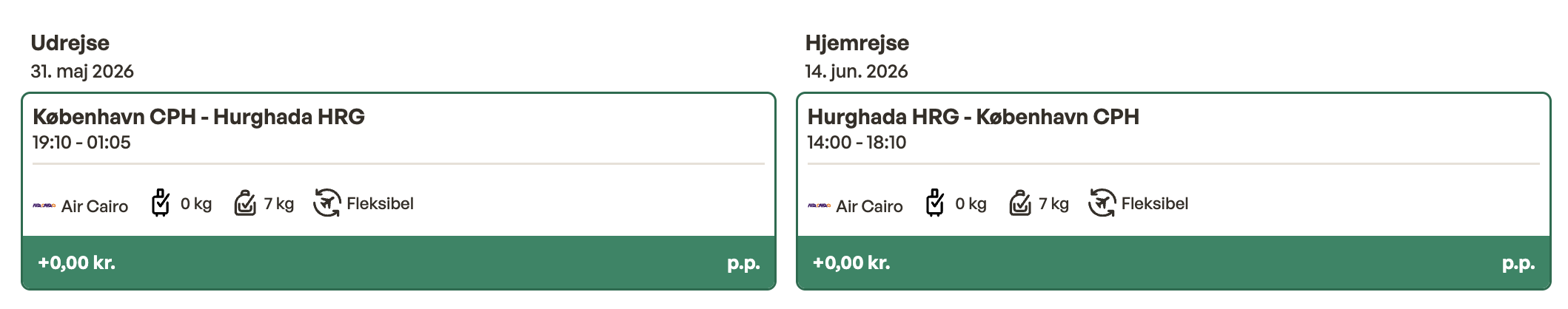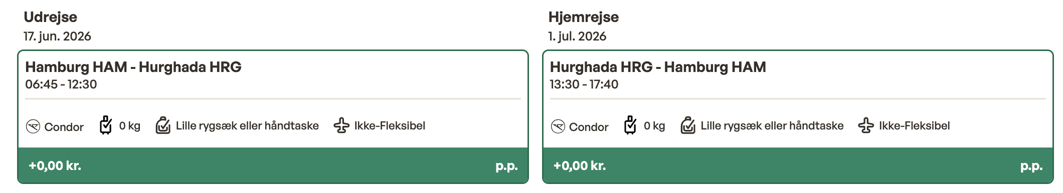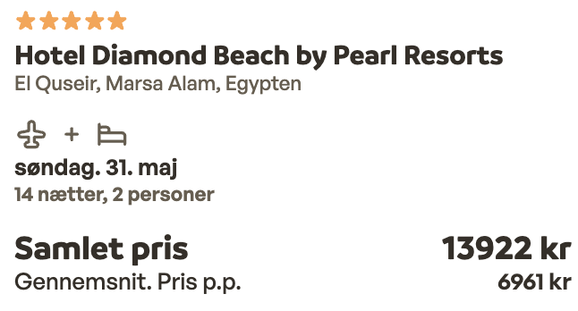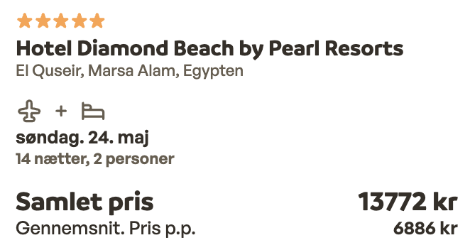 Hvis rejsen er med “Vis rejse” link, så er der tale om en pakkerejse, hvor fly og hotel bestilles på en gang.