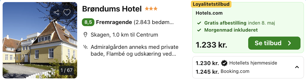 Bemærk: Den samlede pris for opholdet er 1.230,- for 2 personer i et dobbeltværelse, hvilket svarer til 615,- per person. Vi har taget udgangspunkt i et ophold fra den 10. – 11. maj Der kan være mindre prisforskelle på mobil og pc. Undersøg derfor med fordel, hvor det er billigst inden du bestiller. Rejs365 er ikke et rejsebureau, men en rejseside der finder gode tilbud! – Vi modtager kommission, men det påvirker ikke din pris! Læs mere her