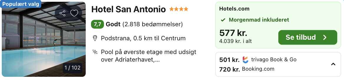 1 uge i Podstrana for kun 2.767,- per person inkl. direkte fly og 4-stjernet hotel med pool, morgenmad og god beliggenhed ved stranden!
