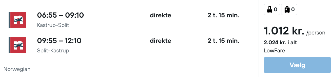 Flyprisen inkluderer kun en lille taske, men bagage kan tilkøbes.
