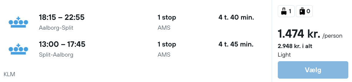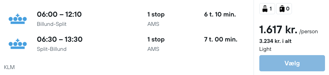 På vores flysøgningsmaskine har vi fundet billige flybilletter fra København, Aalborg og Billund til Split:
