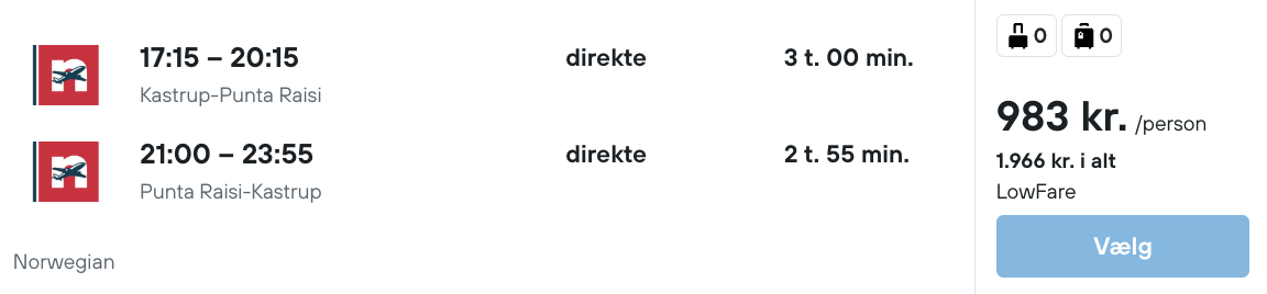 Flyprisen inkluderer kun en lille taske, men bagage kan tilkøbes.