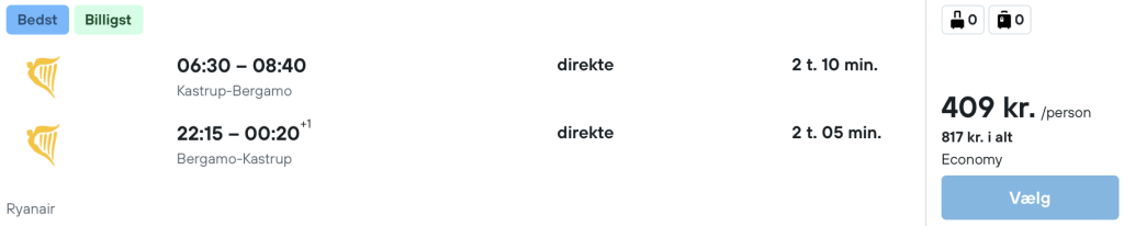 Billeje er super billigt i Milano. Husk at tilpasse tider og lufthavne, så de passer med dine fly.
