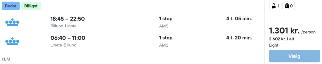 Flyprisen inkluderer kun en lille taske, men bagage kan tilkøbes.