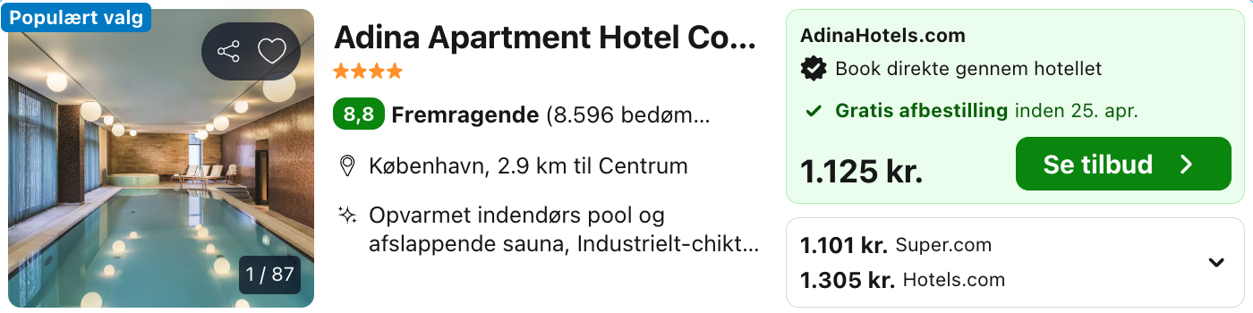 Ophold på det lækre Adina Apartment Hotel Copenhagen for kun 551,- per person inkl. adgang til opvarmet pool!