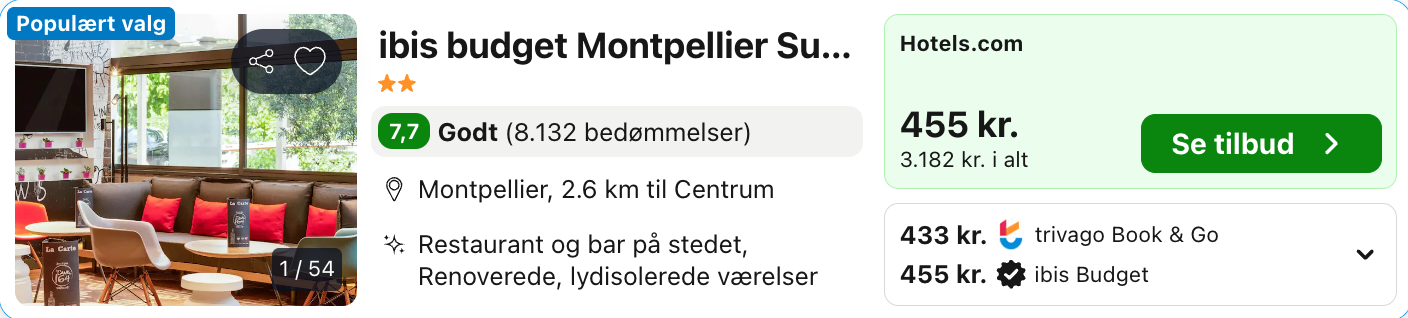 1 uge i Sydfrankrig ved Montpellier for kun 2.426,- inkl. fly og godt hotel med god beliggenhed!