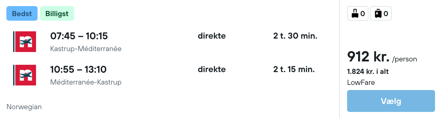 Flyprisen inkluderer kun en lille taske, men bagage kan tilkøbes.