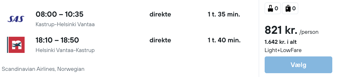 På vores flysøgningsmaskine har vi fundet billige billetter fra København og Aalborg til Helsinki: