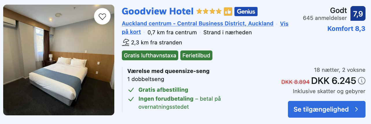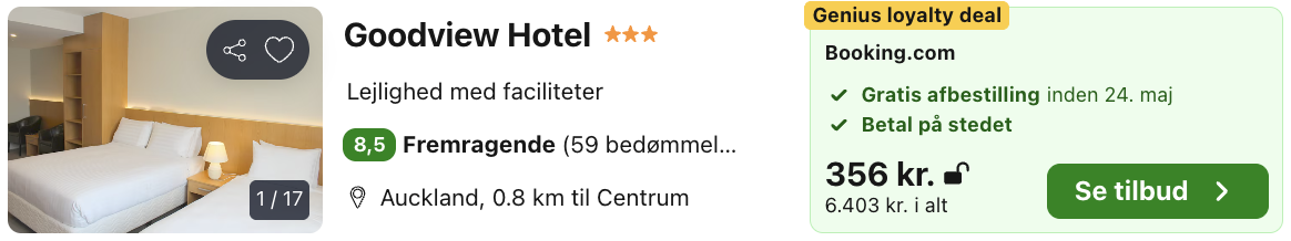 Husk at logge ind / oprette en gratis bruger på Trivago samt hos Booking.com. Derved opnås den bedste pris!