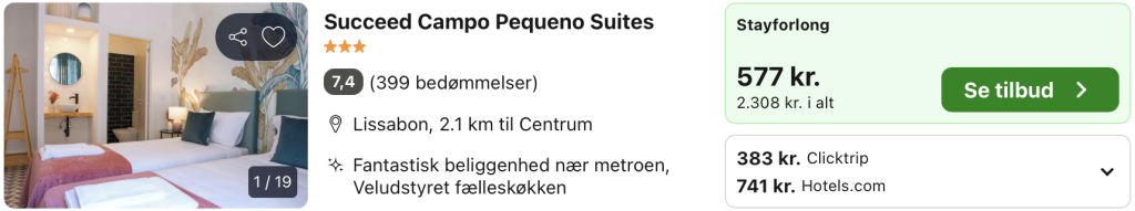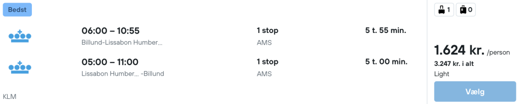 Hvis rejsen er med “Vis rejse” link, så er der tale om en pakkerejse, hvor fly og hotel bestilles på en gang.