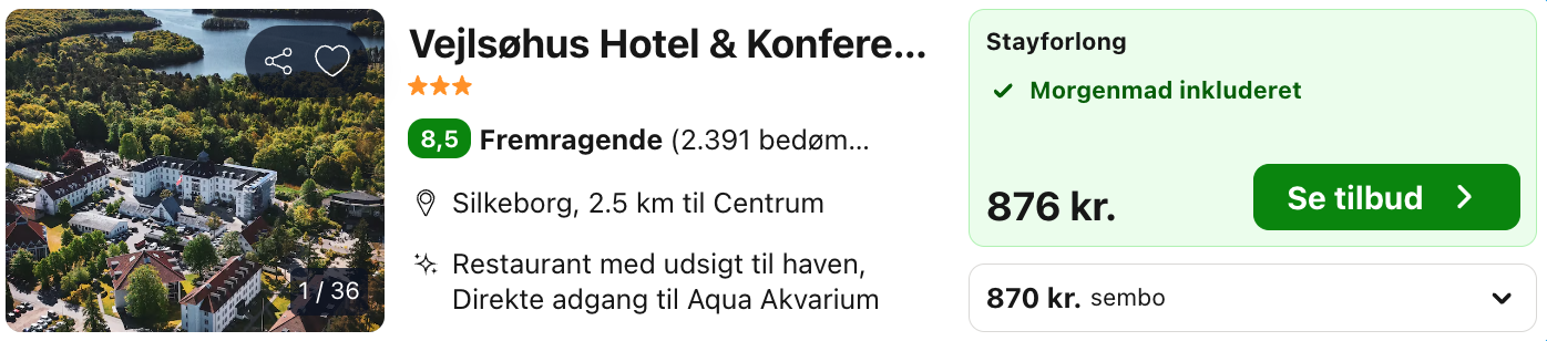 Bemærk: Den samlede pris for 2 personer i et dobbeltværelse er 870,- hvilket svarer til 435,- per person. Der kan være mindre prisforskelle på mobil og pc. Undersøg med fordel, hvor det er billigst inden bestilling.