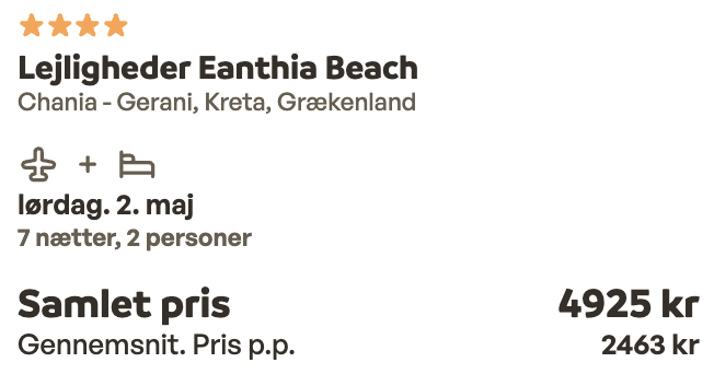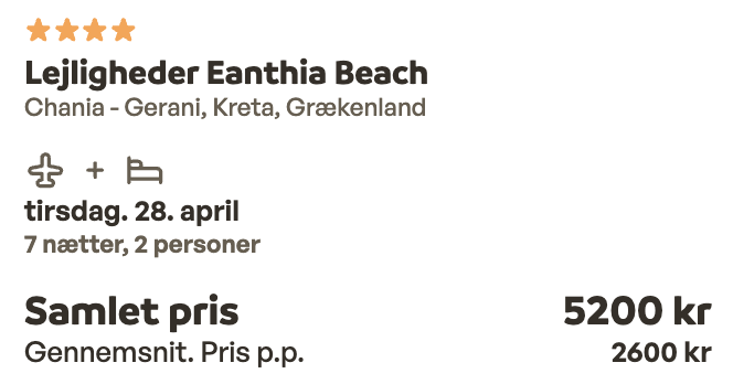 | Bemærk: Sunweb viser den samlede pris for 2 personer.