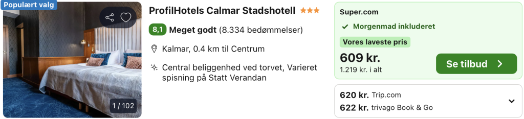 3 dages forlænget weekend i Kalmar for kun 609,- per person inkl. flot 3-stjernet hotel med morgenmad, lækre wellness-faciliteter og super beliggenhed i hjertet af byen!