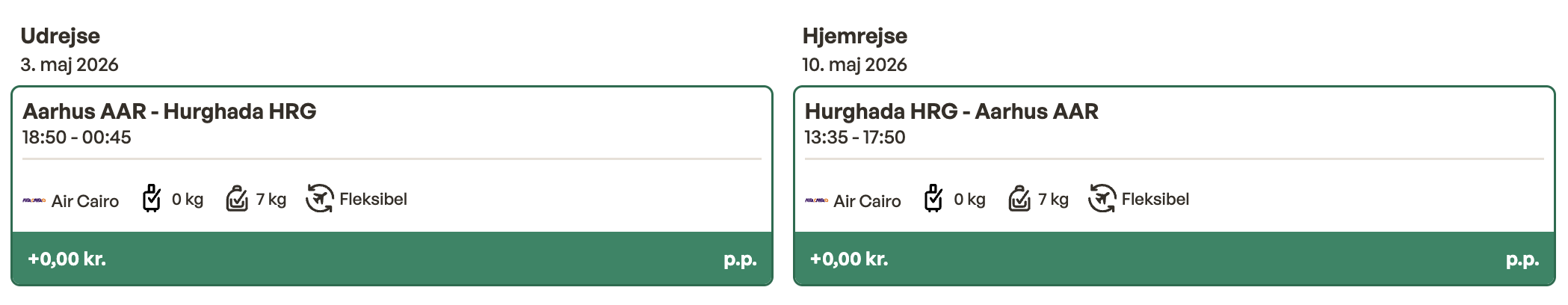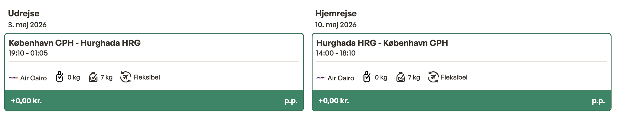 Hvis rejsen er med “Vis rejse” link, så er der tale om en pakkerejse, hvor fly og hotel bestilles på en gang.