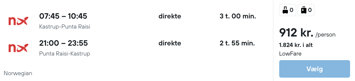 Flyprisen inkluderer kun en lille taske, men bagage kan tilkøbes.