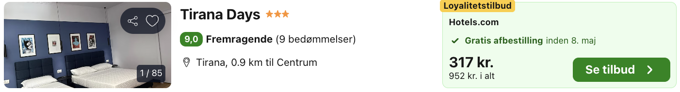 SE det gode tilbud til Tirana HER: